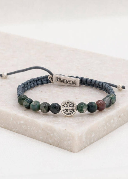Wake Up & Pray Cross Bracelet~Slate / Mixed Agate
