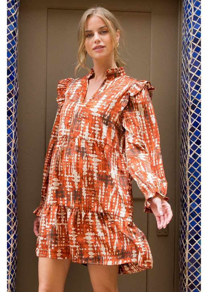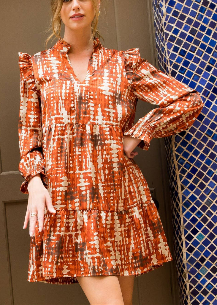 This THML Long Sleeve Tiered Print Dress effortlessly combines style and comfort. The tiered design adds a unique touch to the classic print, while the long sleeves provide coverage without sacrificing sophistication. Made with high-quality materials, this dress is perfect for any occasion.