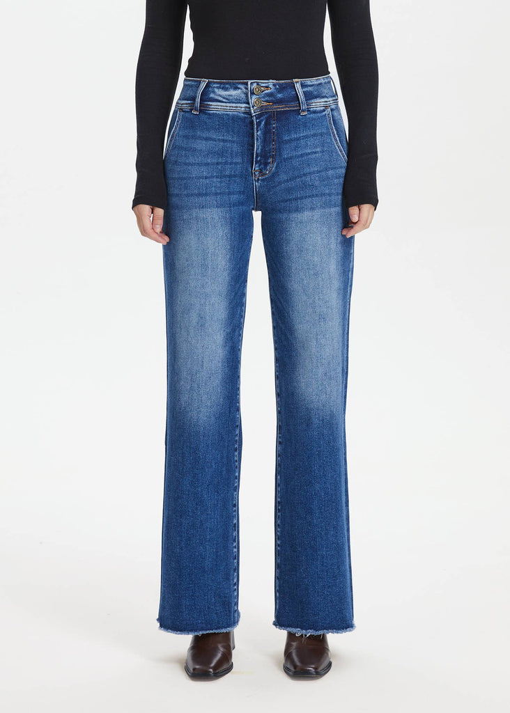 High-rise straight jeans crafted for timeless appeal and versatile styling. The raw hem adds an effortlessly refined edge, perfect for dressing up or down. Designed with a flattering high-waisted silhouette that elongates the leg, these jeans transition seamlessly from casual weekends to polished weekday looks. A wardrobe essential that combines classic construction with contemporary detailing.