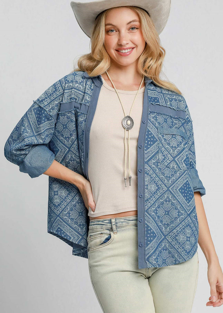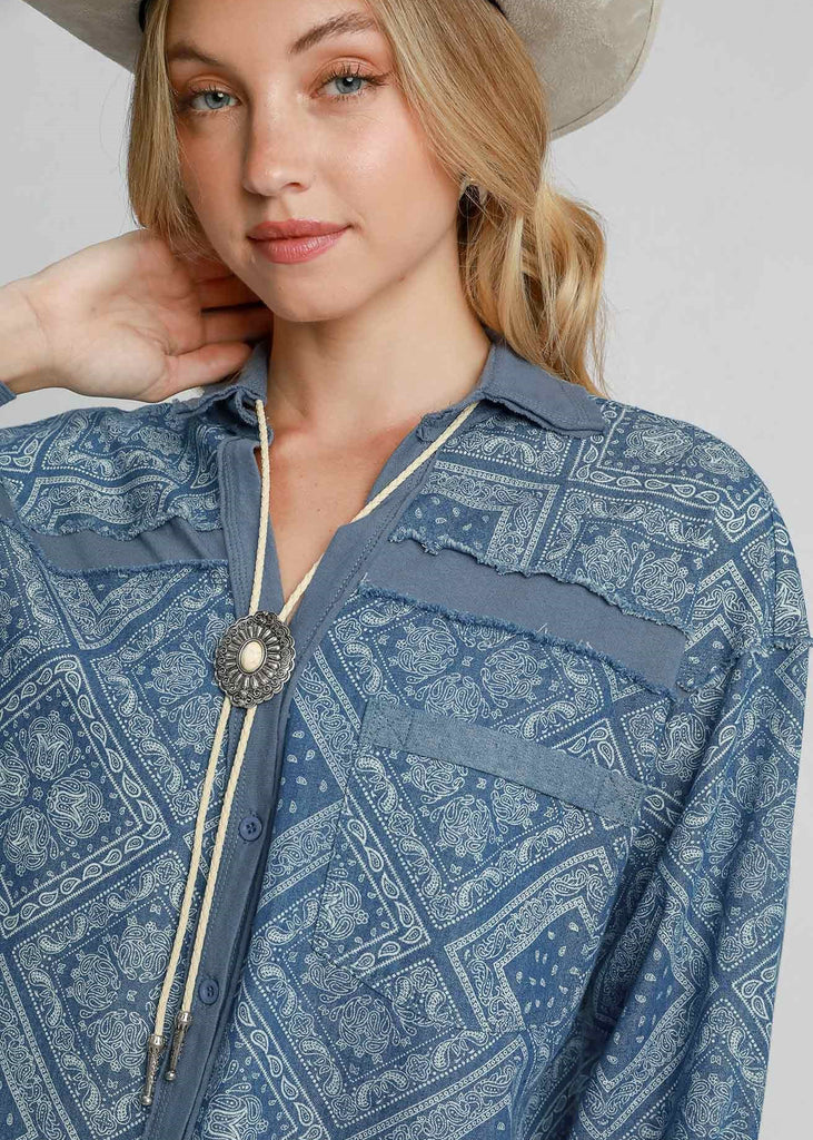 Discover the perfect layering piece that works as hard as you do. This light denim western shacket combines authentic western aesthetics with everyday versatility—wear it buttoned up for polished sophistication or open as a lightweight jacket. The premium construction offers durability without sacrificing comfort, while button closures and classic western detailing add character that sets you apart. Whether you're dressing up or down, this shacket adapts to your lifestyle, making it an investment piece you'll reach for season after season.