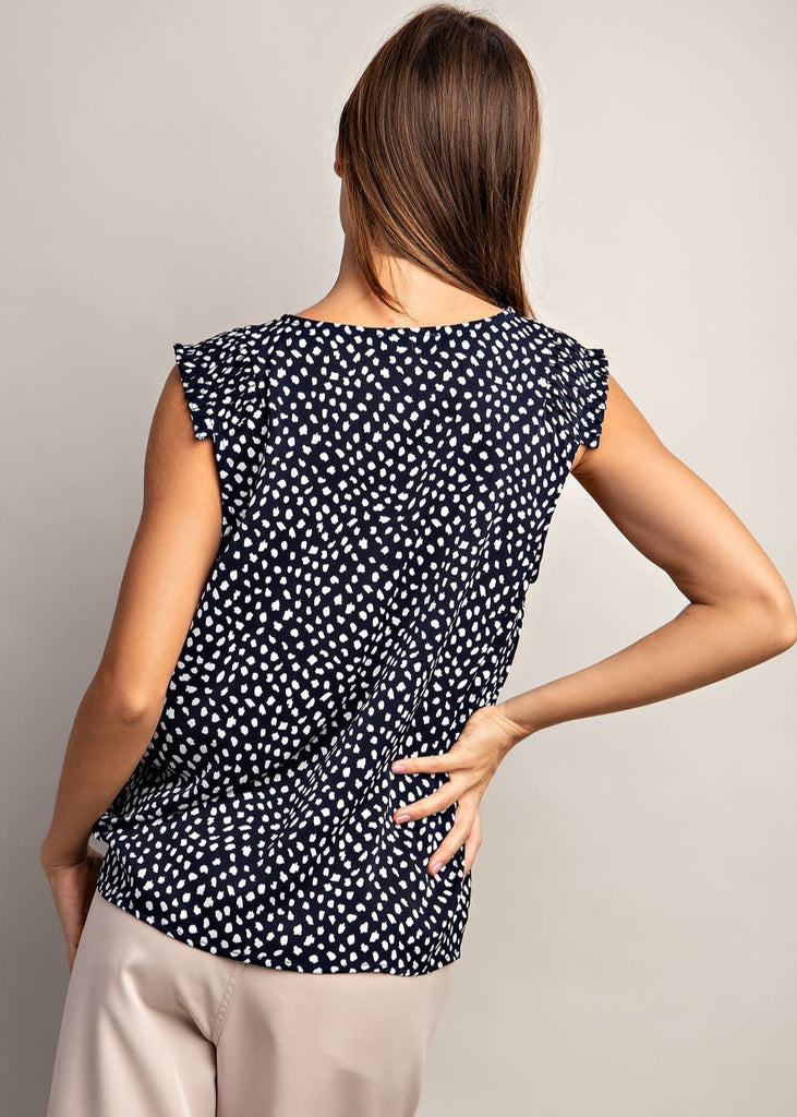 Navy and White Dot Pleated Sleeve Top