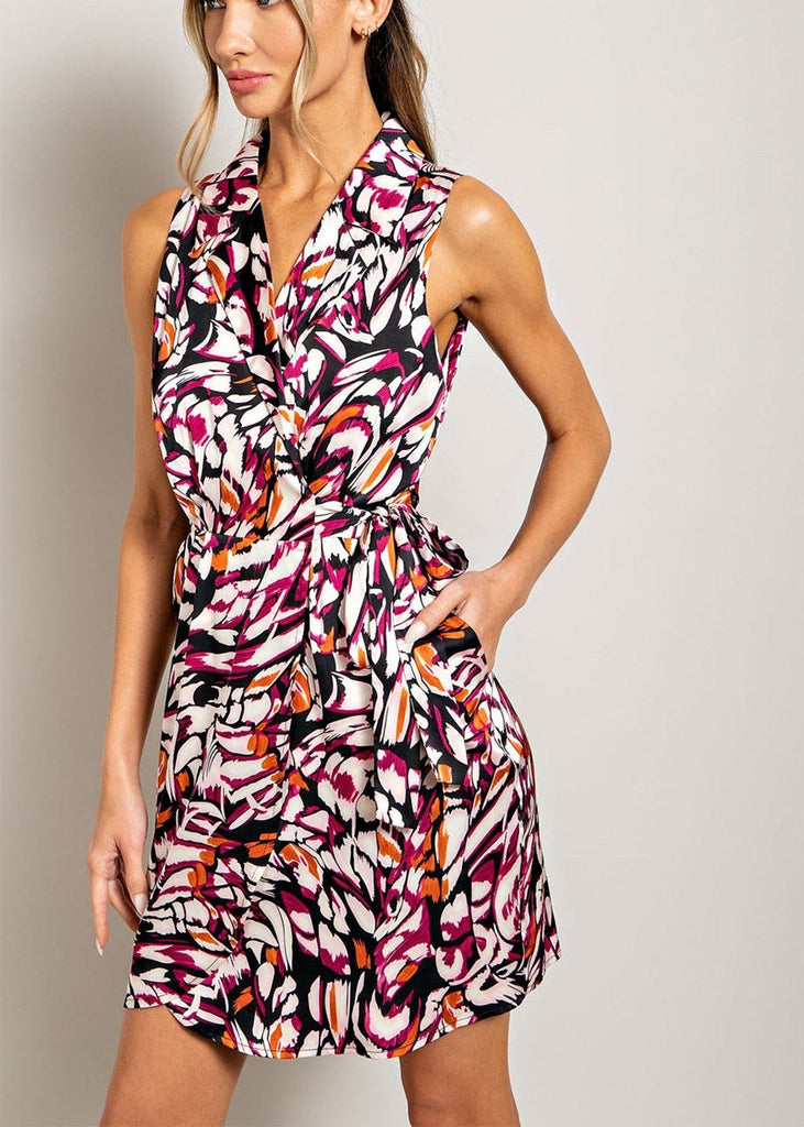 Abstract Print Sleeveless Wrap Dress